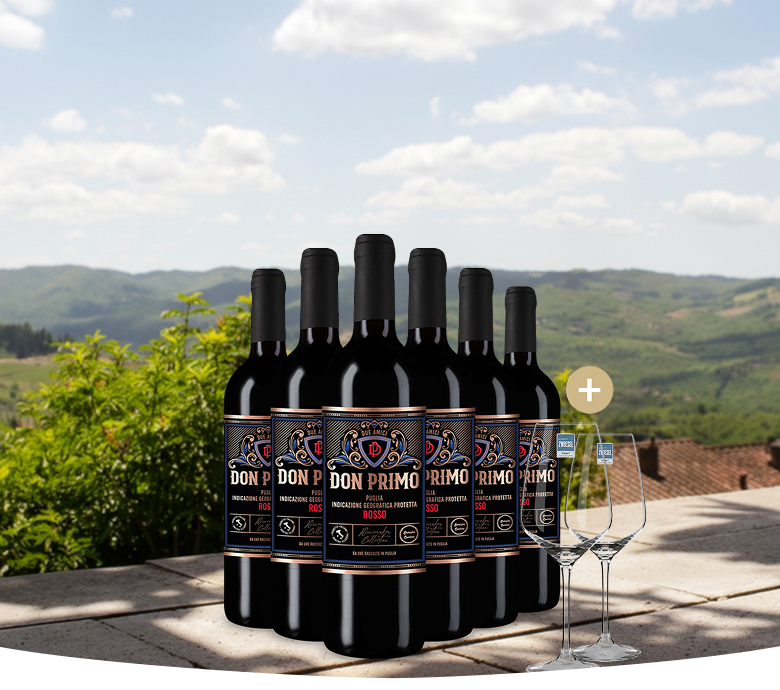 Sichern Sie sich Ihr Weinfürst Genuss-Paket – 6 Fl. Rotwein + 2 Gläser im Probierpaket (-55%).
